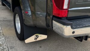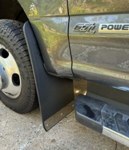 We custom design our drill-less mud flaps to any size and then shift them to fit with your aftermarket wheels