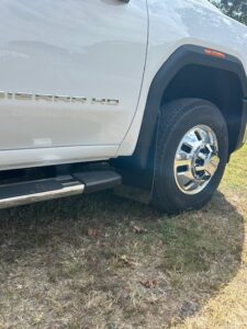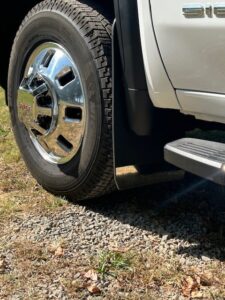We custom design our drill-less mud flaps to any size and then shift them to fit with your aftermarket wheels